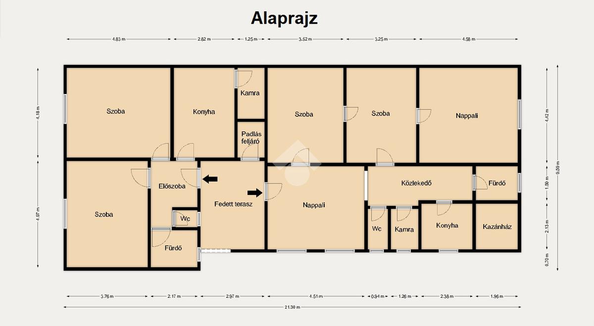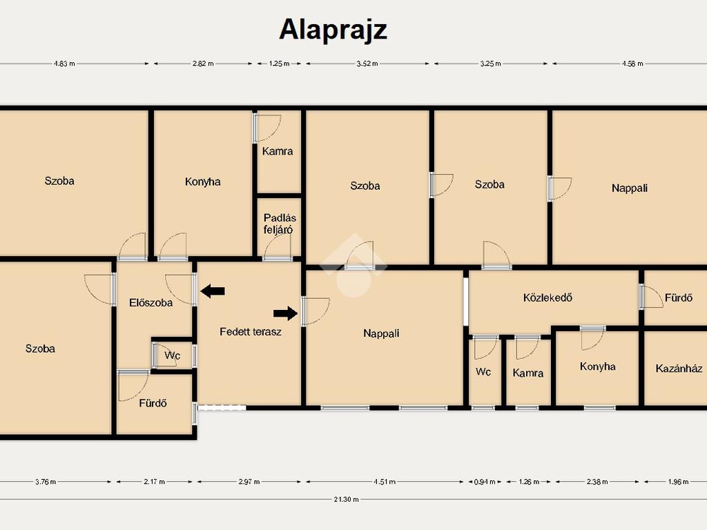 2 szobakonyhafürdőszobatágas, világos előtérfelújított műanyag nyílászárók, új vízvezetékek, új belső ajtókHátsó házrész – 1977-ben épült, felújítandó állapotú: