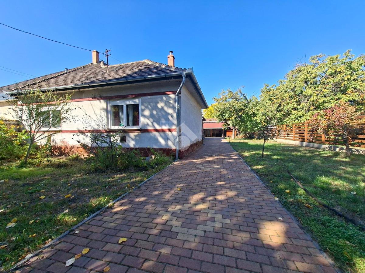 Az ingatlan egy 742 m²-es, rendezett telken helyezkedik el, ahol autóbeállási lehetőség biztosított, a kert végében pedig egy fedett beálló két autó részére is helyet kapott.